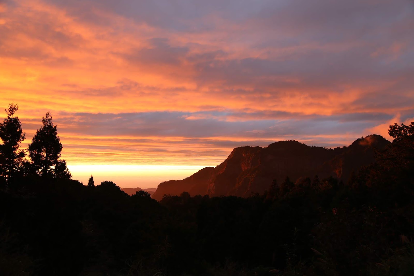 As it was very close to sunset, we rushed back on the trail to a look-out near Chaoping Station, almost at jogging speed, in order not to miss a view of the sunset glow, one of the Five Wonders of Alishan. We were just in time to catch a sight of the yellowish sky, changing to orange, followed by a spectacular red, or crimson rather. We were absolutely thrilled and were all too glad that the sky wasn't overcast that evening, allowing us to see this splendor of nature.